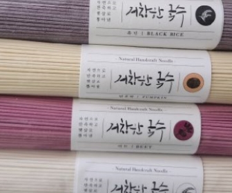 두딸 그리고 큰사위와 작은사위까지 손을 보태고 있지만 현규 씨의 고집스러운 국수 철학으로 흑미, 비트, 단호박, 쌀, 부추 등 천연 재료로만 국수의 오방색을 내다보니 온 가족은 이른 아침부터 시작해 해 질 녘까지 국수에만 매달리고있었는데 이렇게 만들어진 거창 오방색국수는 전국택배 구매주문도 가능해서 인기라고하네요